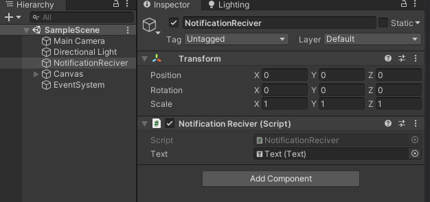 NotificationReciver의 Text에 참조를 걸어줍니다.